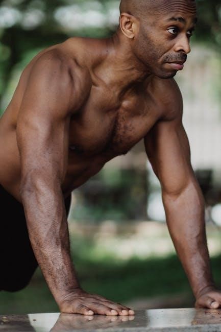 Bodyweight training PDFs often emphasize controlled descent and explosive ascent, focusing on a full range of motion․